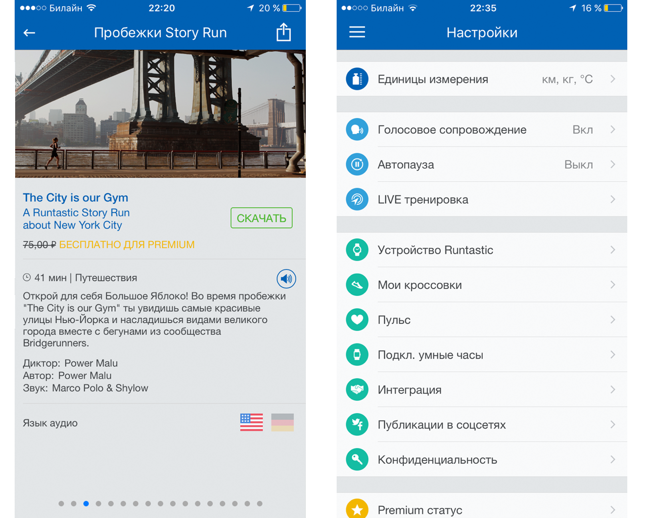 - музыка и пробежки Story Run (мотивационные и приключенческие пробежки с сюжетом и озвучкой)