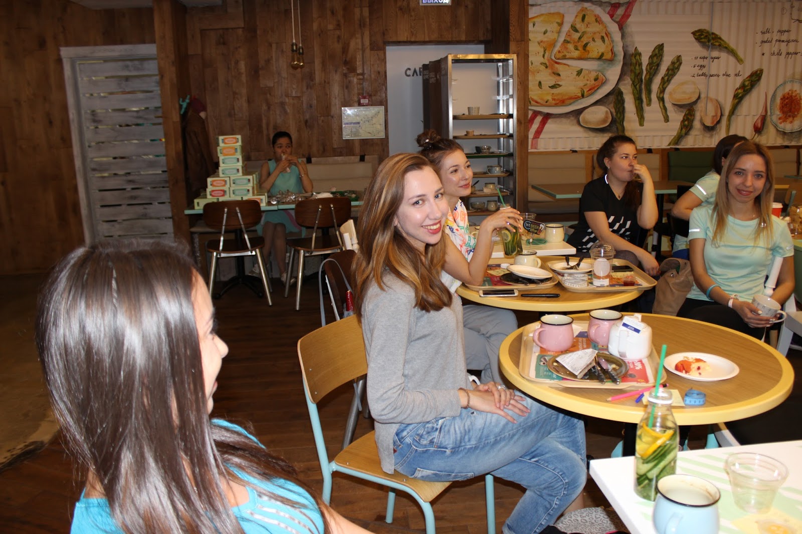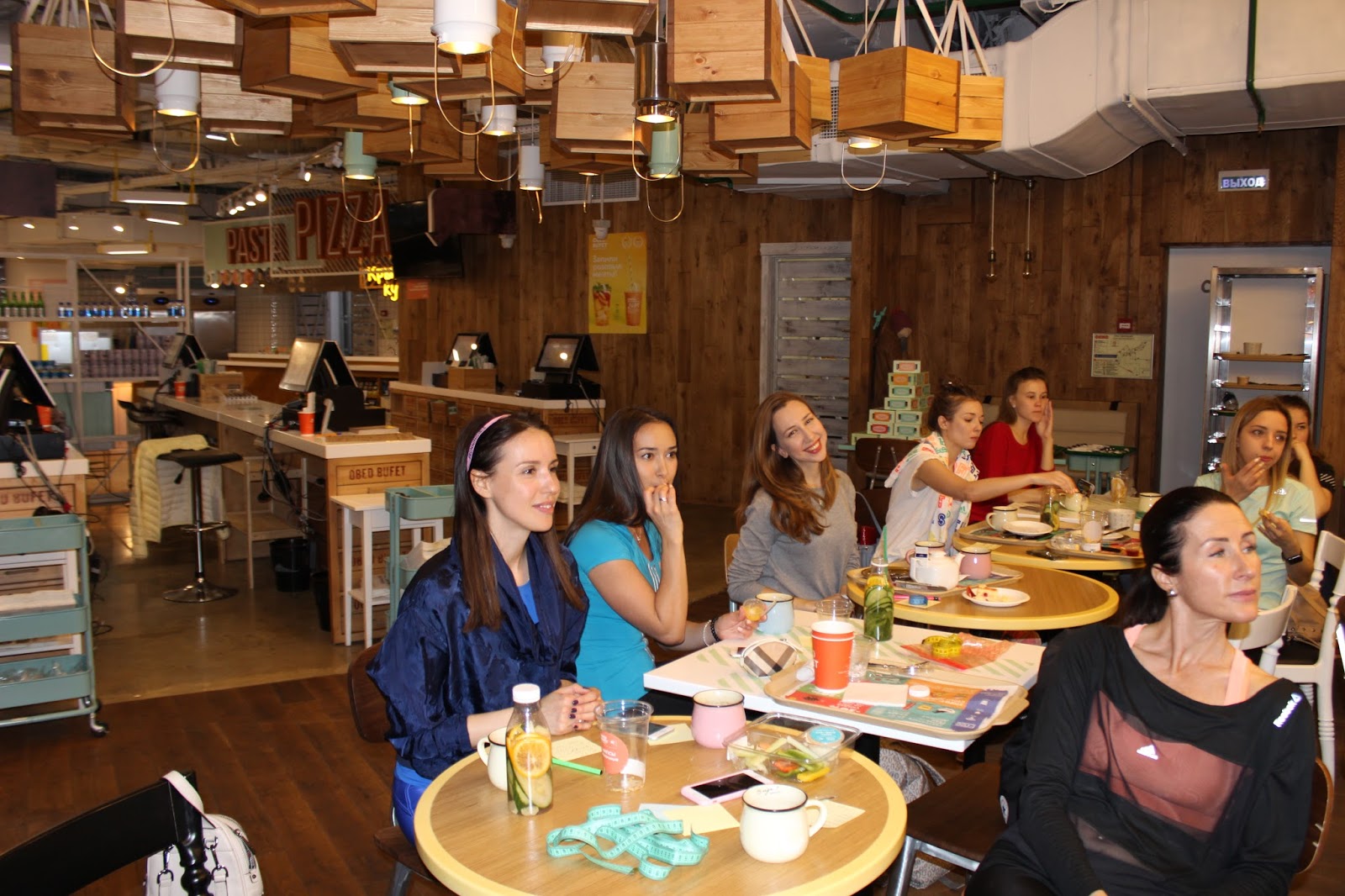 Пробежкой мы решили не ограничиваться, а продолжили утро вкусным завтраком в рестомаркете OBEDBUFET, а затем весело поиграли и узнали много нового о психологии телесности от Анастасии Борисовой!