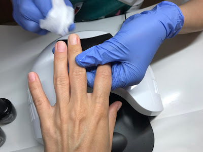 Шаг 2. Ногтевая пластина обезжиривается для максимального сцепления гель-лака с ноготками.