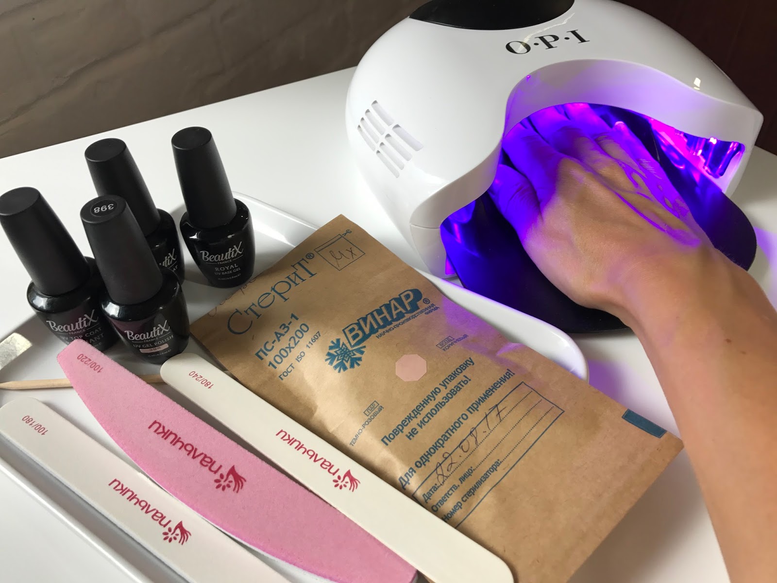Мой личный выбор — гель-лаки BEAUTIX (на фото оттенок 398), потому что из всего, что я пробовала (Shellac, Jessica, OPI), они создают минимальный объем на ногтях, выглядят как лак, и я их практически не чувствую. Ложатся плотно, без разводов и просветов. Финишное покрытие сохраняет блеск до снятия. При ежедневной домашней работе покрытие носится идеально 2 недели, а больше и не нужно. Ногти после снятия выглядят здоровыми и без повреждений.