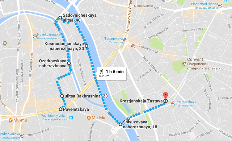 Еще один маршрут из серии «около дома» со стартом около станции метро «Павелецкая», а финишем на «Крестьянской заставе». Это маршрут по набережной реки Москвы, который вечером особенно прекрасен.